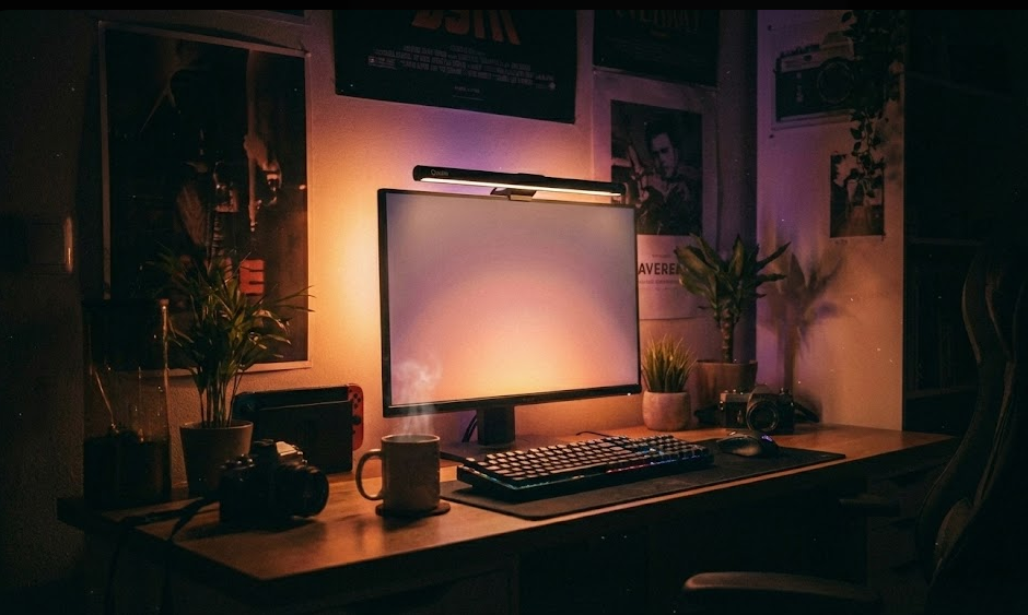 もちろん、Quntis特有の「非対称配光」なので、画面への映り込み(反射)はゼロ。 高演色性(Ra95)のLEDを採用しているため、Webデザインや写真編集など、色味が重要な副業をしている方にも最適です。