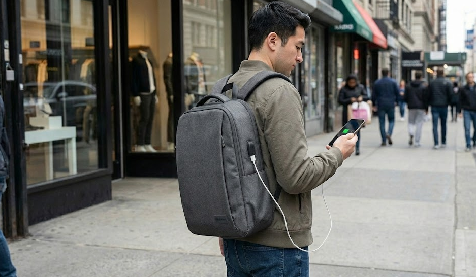 3. 背負ったまま充電!? USBポートが地味に便利